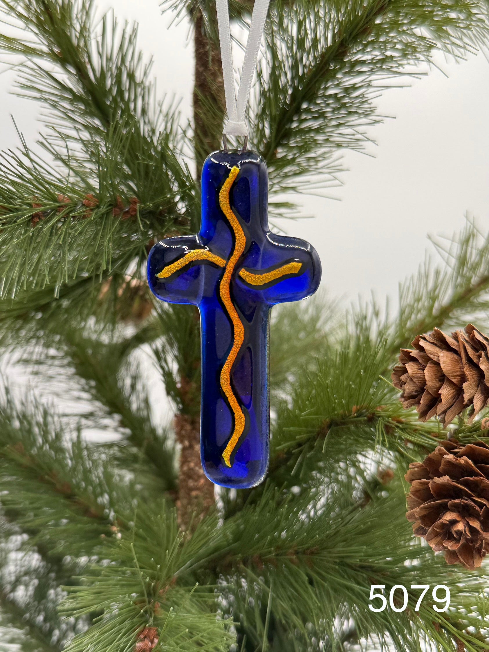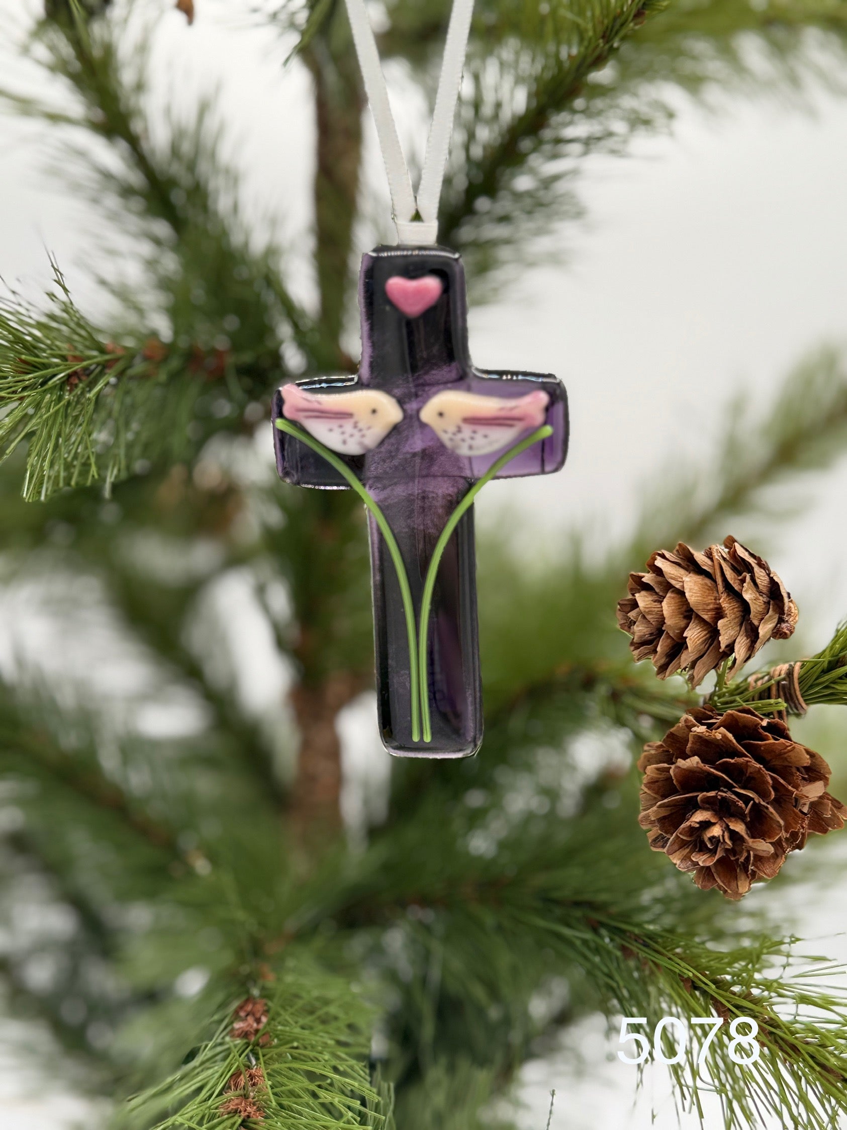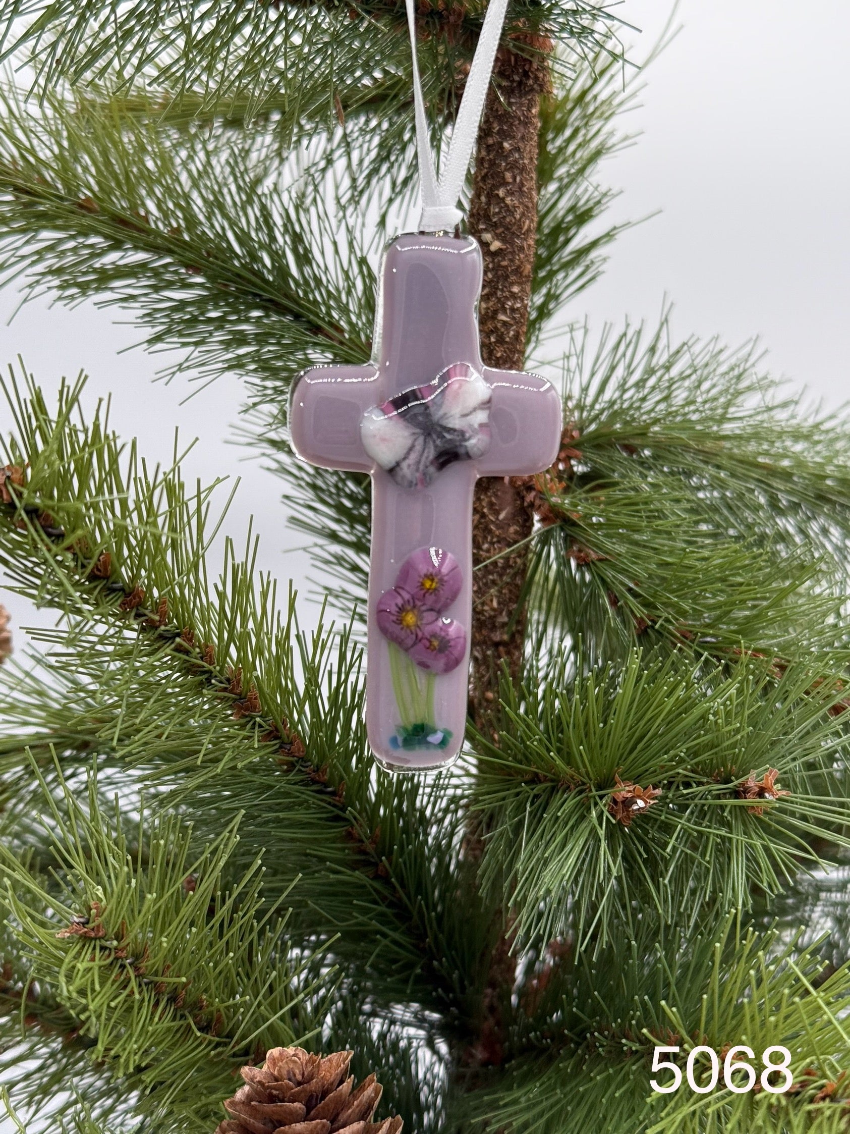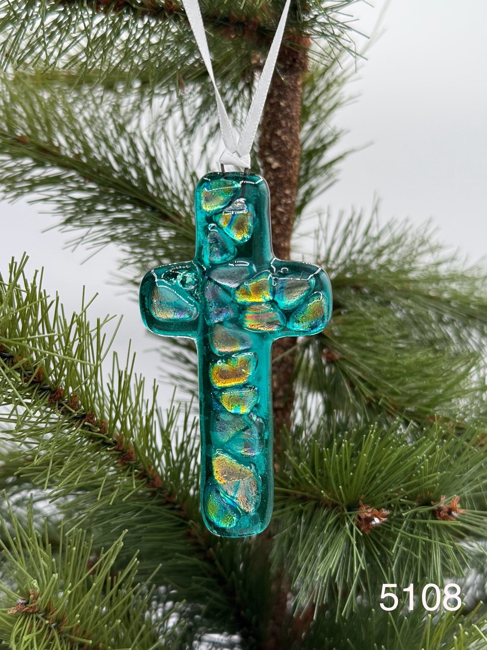 Add a splash of color and charm with these lovely fused glass crosses! Perfect as cheerful tree ornaments, eye-catching wall hangings, or unique pendants, they bring a fun and creative touch wherever you choose to display them. Approximately 3.5" x 1.5"