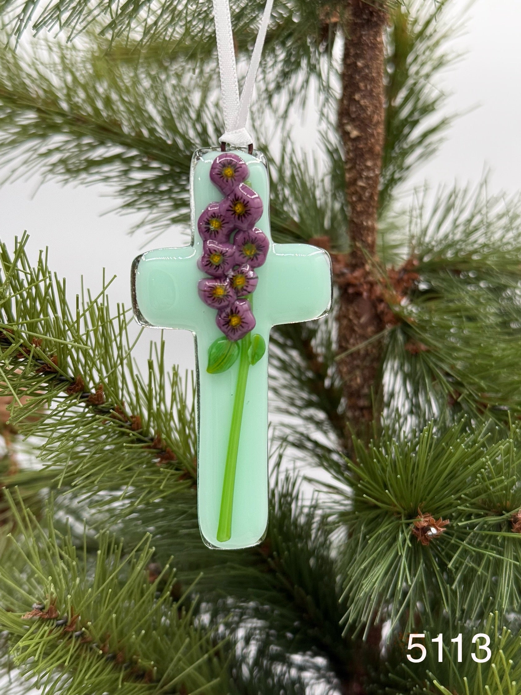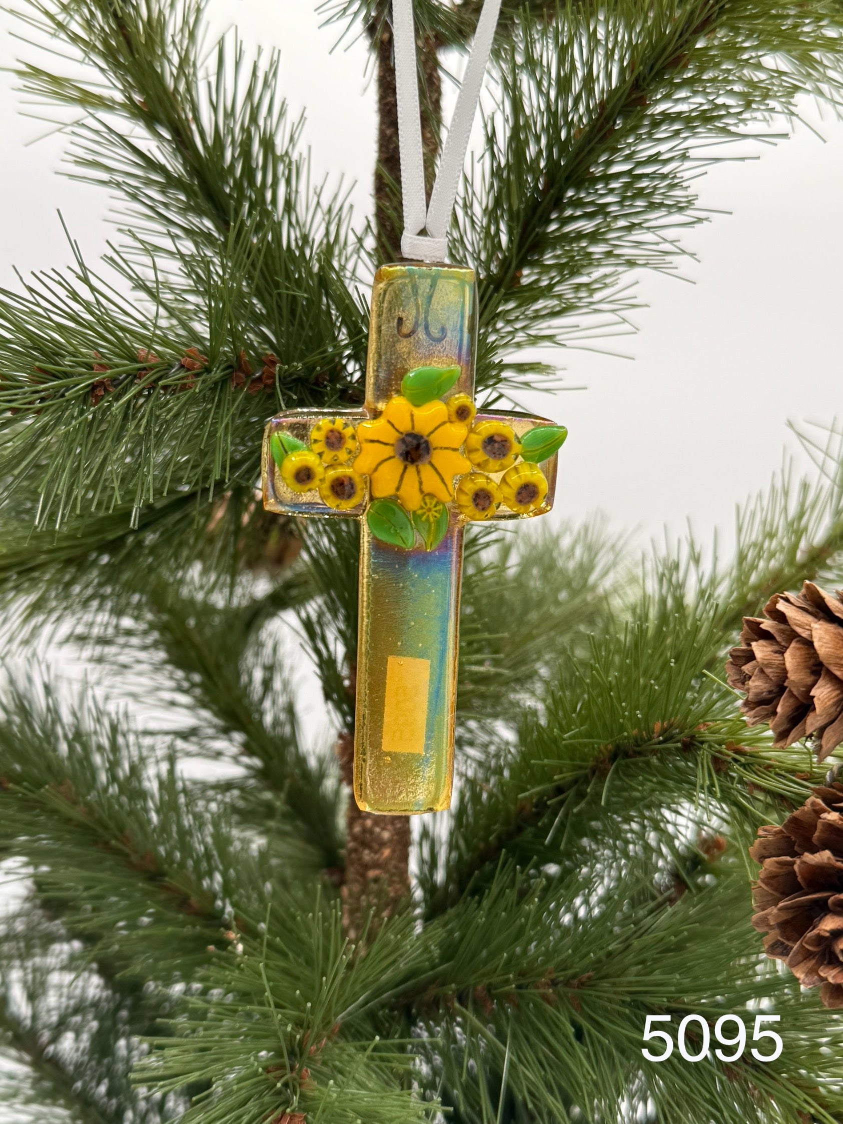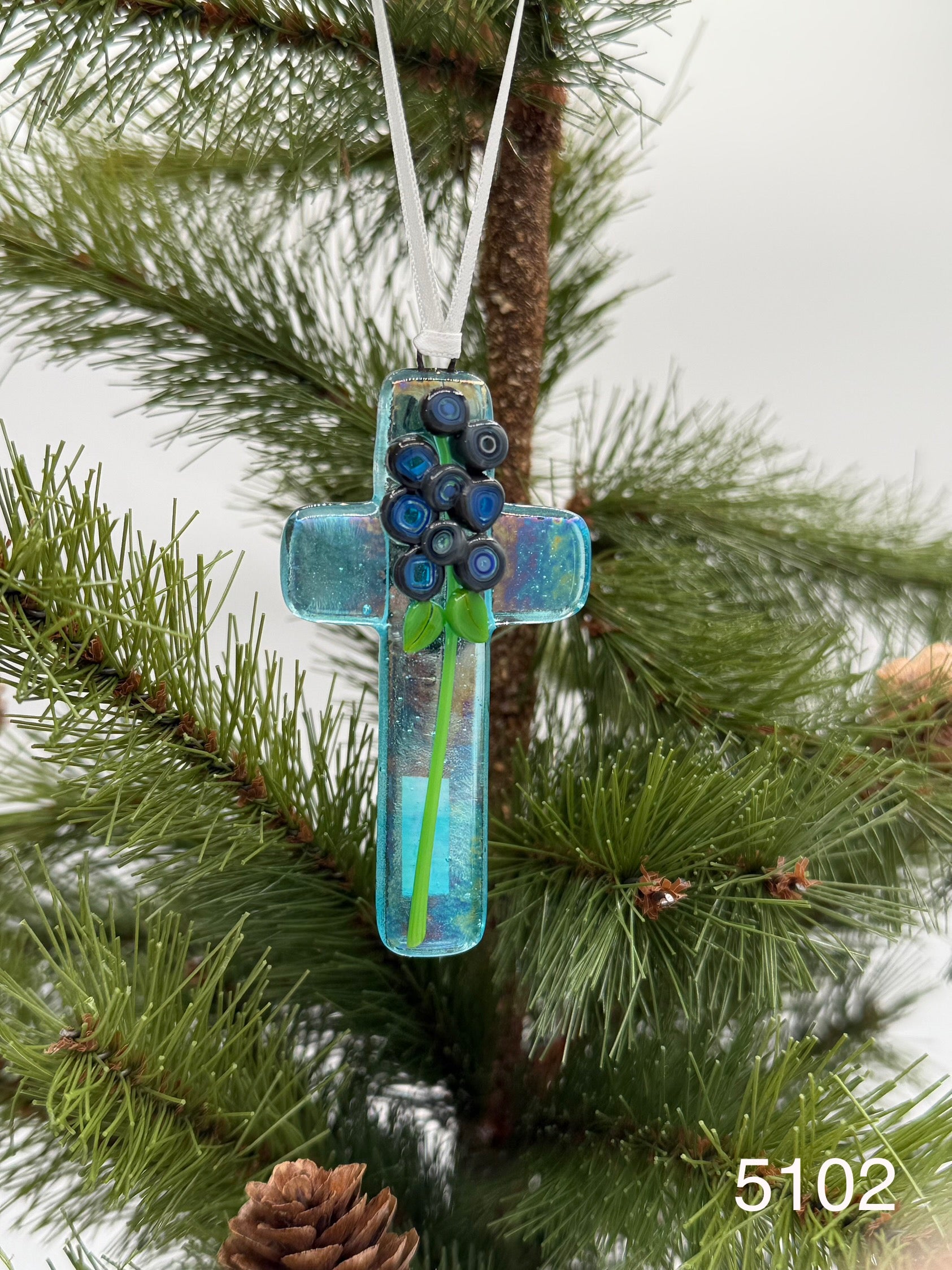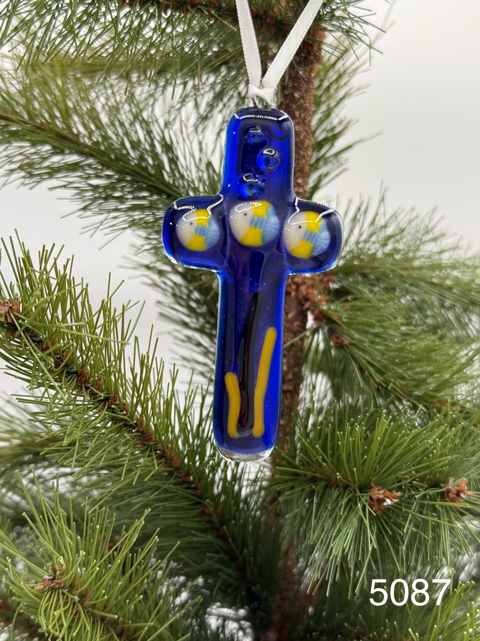 Add a splash of color and charm with these lovely fused glass crosses! Perfect as cheerful tree ornaments, eye-catching wall hangings, or unique pendants, they bring a fun and creative touch wherever you choose to display them. Approximately 3.5" x 1.5"